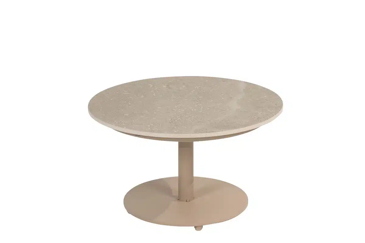 4 Seasons Outdoor | Boaz koffietafel 60 x 35 cm | LatteDeze elegante ronde koffietafel van Fonteyn brengt verfijnde stijl in jouw woonkamer. Het keramische tafelblad in warme latte tinten combineert prachtig met het robuuste RVS frame. Het minimalistische pedestal ontwerp maakt deze tafel tot een stijlvolle aanvulling op elke moderne woonruimte waar comfort en design samenkomen.nnEen warme uitstraling die jouw woonkamer opwarmtHet keramische tafelblad toont prachtige steenachtige textuur met natuurlijke spikkelingen die diepte en karakter geven aan jouw interieur. Deze subtiele beige variaties zorgen ervoor dat de tafel een luxueuze en warme atmosfeer creëert in jouw woonkamer. De ronde vorm stimuleert gezellige gesprekken en zorgt voor natuurlijke doorloop in jouw ruimte, terwijl de neutrale latte kleur harmonieus aansluit bij verschillende interieurstijlen en kleurpaletten.nnFunctioneel design voor al jouw dagelijkse momentenMet een diameter van 60 cm biedt deze koffietafel voldoende ruimte voor tijdschriften, decoratieve objecten en jouw favoriete drankjes. De hoogte van 35 cm zorgt voor perfecte bereikbaarheid vanaf jouw bank of fauteuil. Het pedestal onderstel maximaliseert de beenruimte rondom de tafel. Het keramische oppervlak biedt een stabiele basis voor al jouw dagelijkse activiteiten.nnZorgeloos onderhoud dat tijd bespaartDoor het keramische tafelblad geniet je van vlekbestendigheid en minimaal onderhoud. Een eenvoudige reiniging met een vochtige doek houdt het oppervlak glanzend en fris. Het gladde materiaal absorbeert geen vloeistoffen en verzamelt minder stof dan poreuze oppervlakken. Door de robuuste constructie blijft deze tafel jarenlang mooi en functioneel, zelfs bij intensief dagelijks gebruik in actieve huishoudens.n