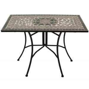 Bistrotafel – Aluminium steen – Zwart 90 cmWandtafel 90x45cm rechthoekig, ijzer + grijs mozaïek tafelbladDeze stijlvolle wandtafel met een ijzeren frame en grijs mozaïek rechthoekig tafelblad van 90x45cm is perfect voor het creëren van extra tafel…