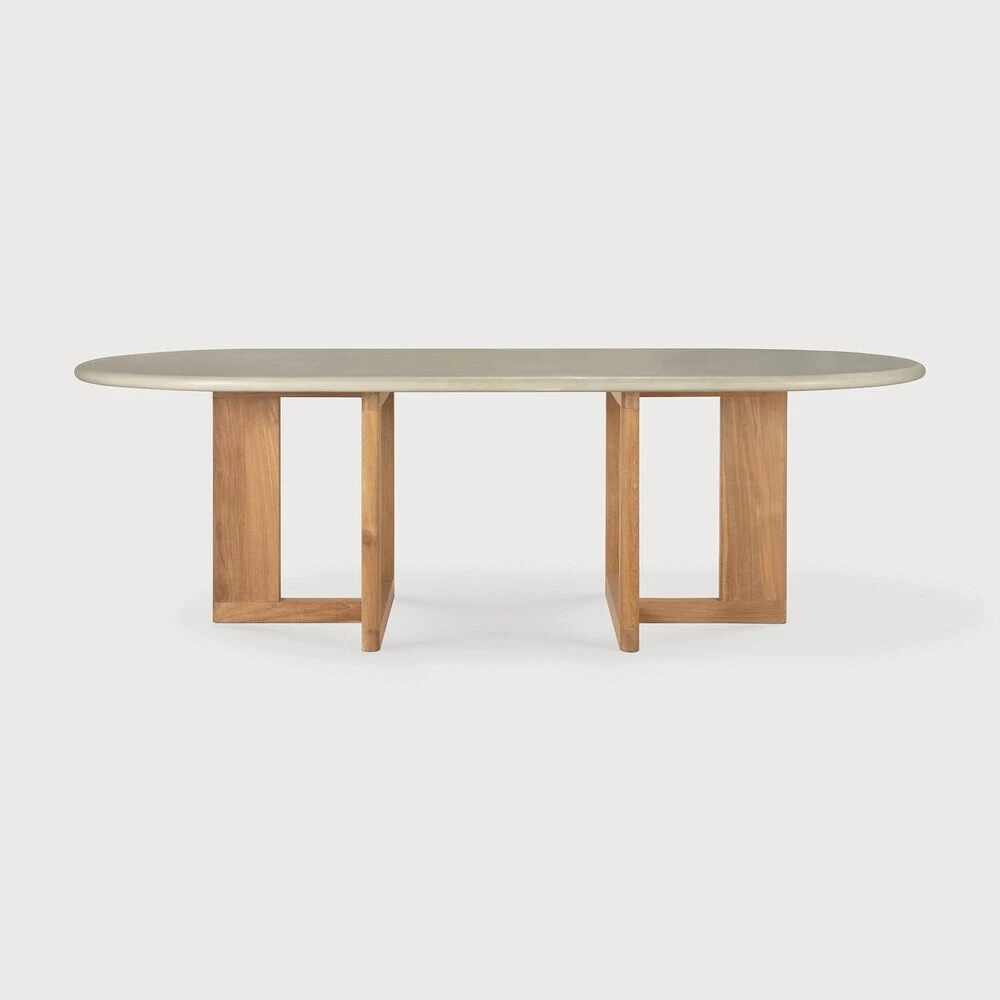 Ethnicraft Ovale Tuintafel Trestle Beton en teakhout, 240 x 110cm