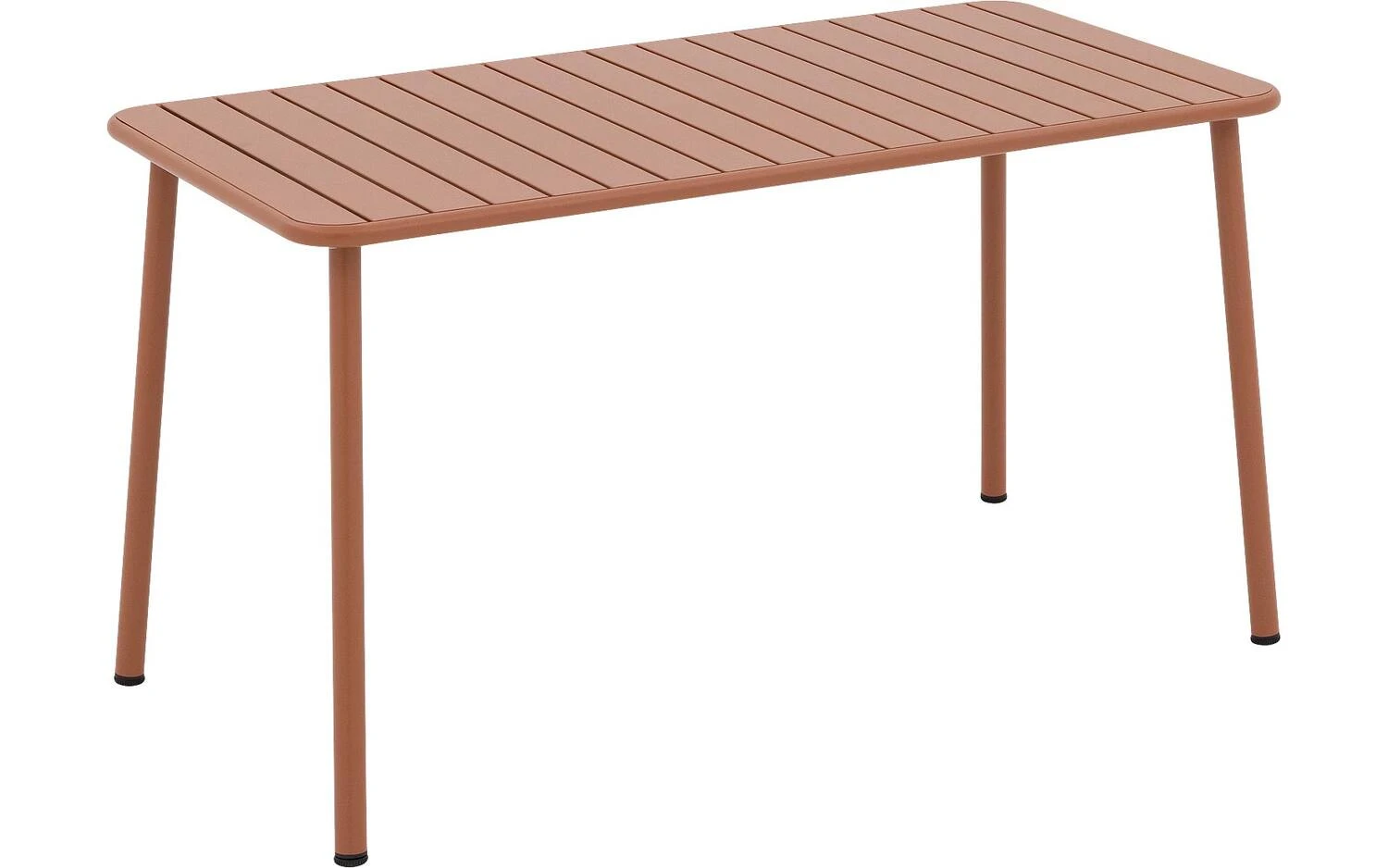 Oranje tuintafel Verge van 140×70 cm is een opvallende rechthoekige eettafel voor buiten die kleur en karakter geeft aan je tuin of terras. Het metalen frame met oranje poedercoating is stevig, weerbestendig en zorgt voor een stoere, speelse uitstraling die goed combineert met neutrale of houten tuinstoelen.