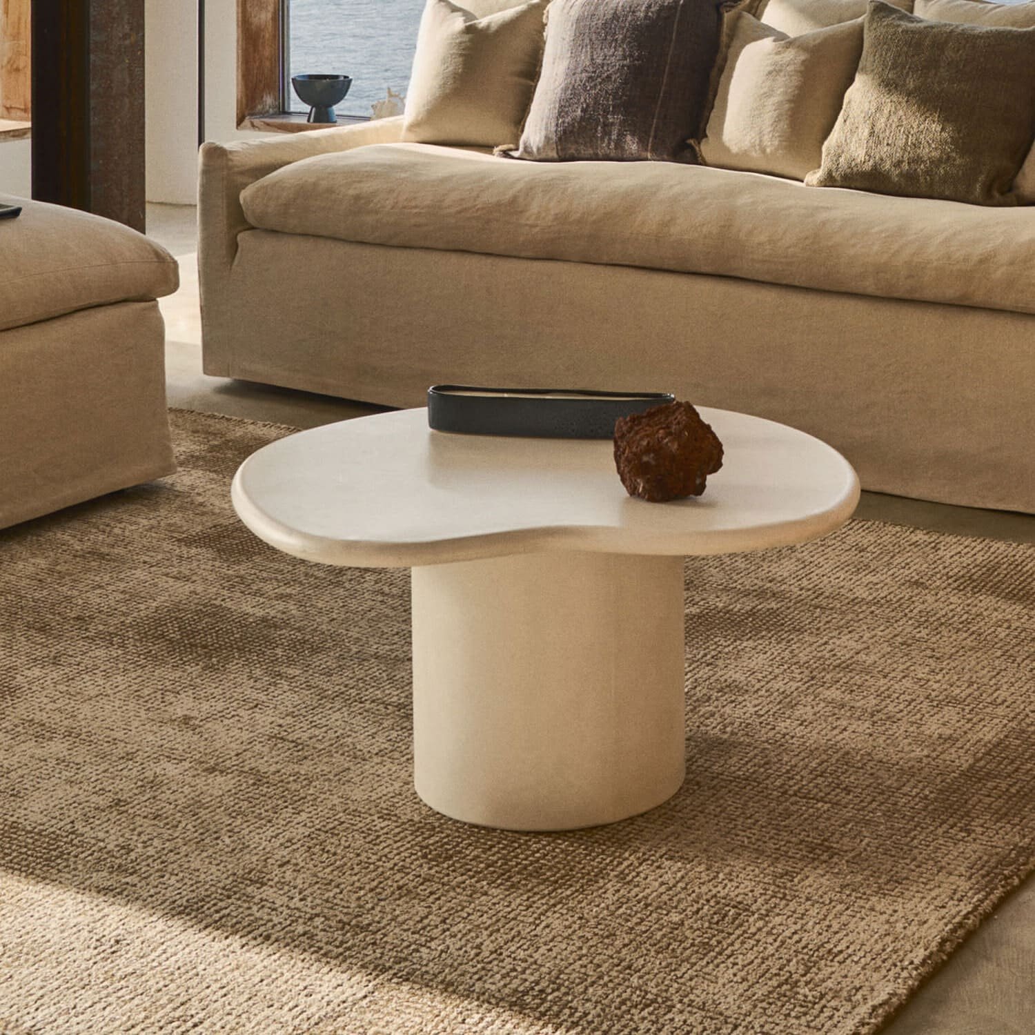 Kave Home Organische Salontafel ‘Macarella’ Cement, 83 x 77cm, kleur Wit