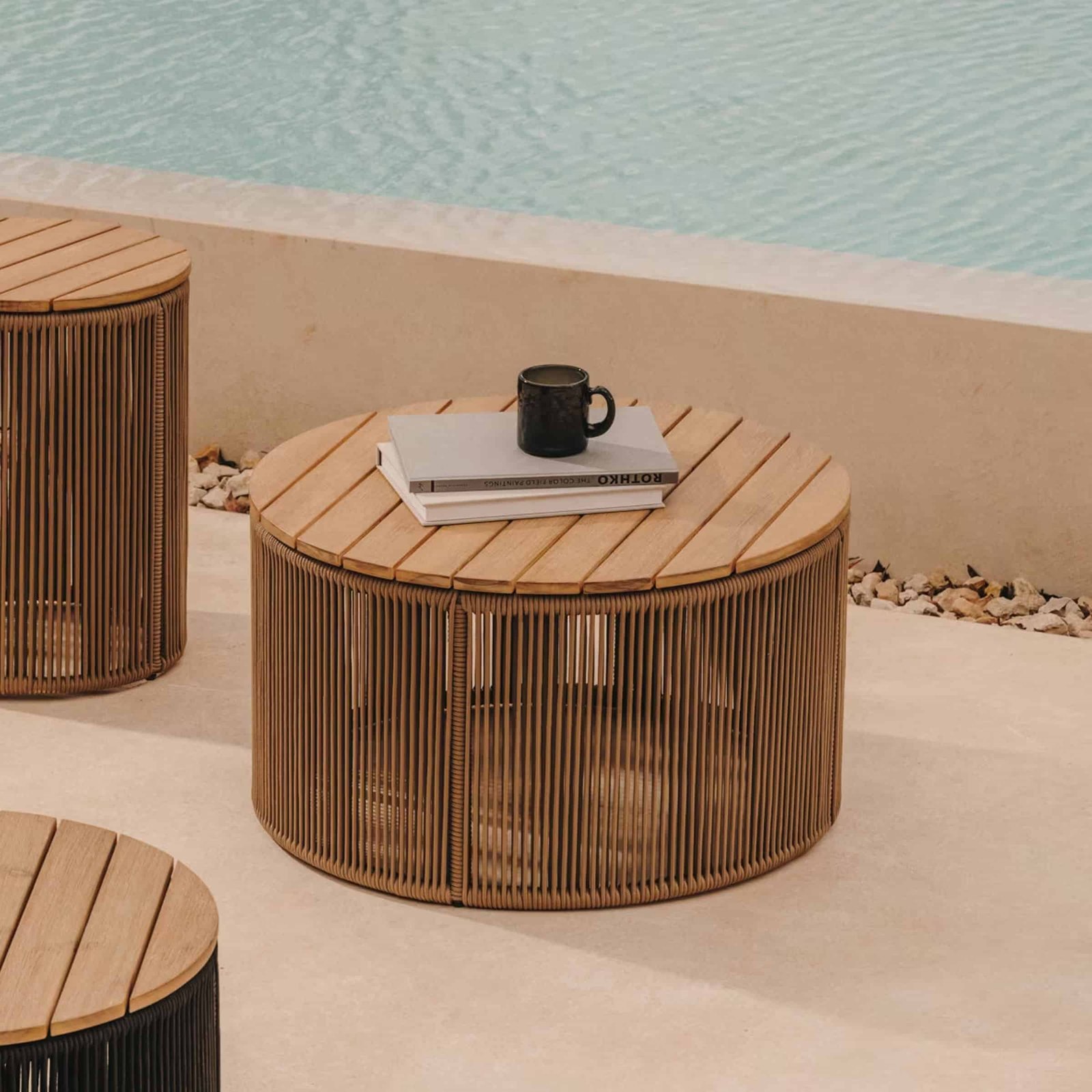 Kave Home Outdoor Salontafel 'Dandara' Acaciahout en touw, 70cm, kleur Beige