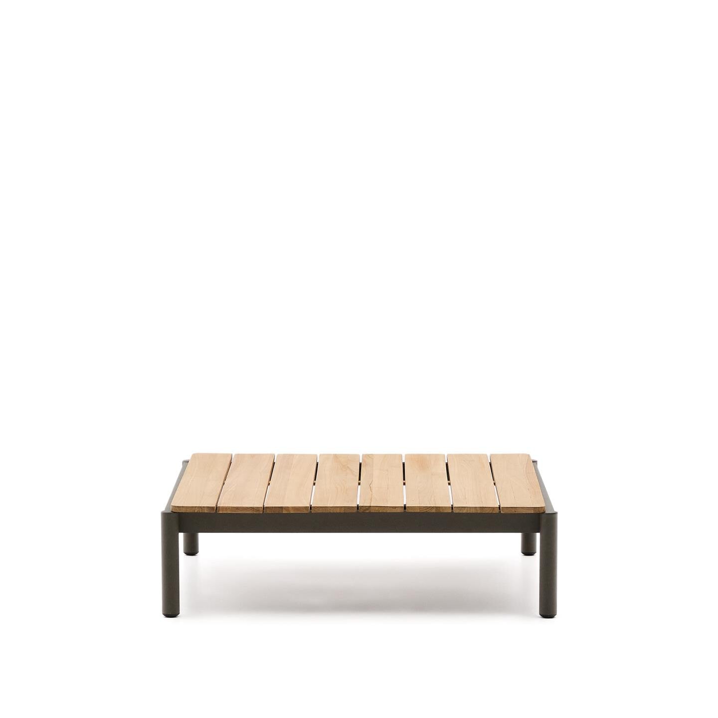 Kave Home Outdoor Salontafel Sorells Teakhout en groen aluminium, 89 x 91cm – Donkergroen