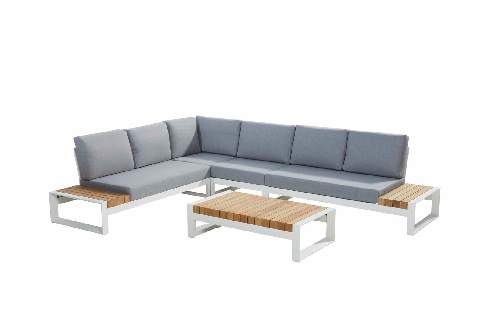 Wat opvalt zijn de optisch dikke teak delen in de platform delen en in de salontafel. Dit geeft de Matisse een premium uitstraling. In de Matisse hoekbank liggen comfortabele all weather loungekussens die heerlijk aanvoelen en tevens bestand zijn tegen een regenbui.