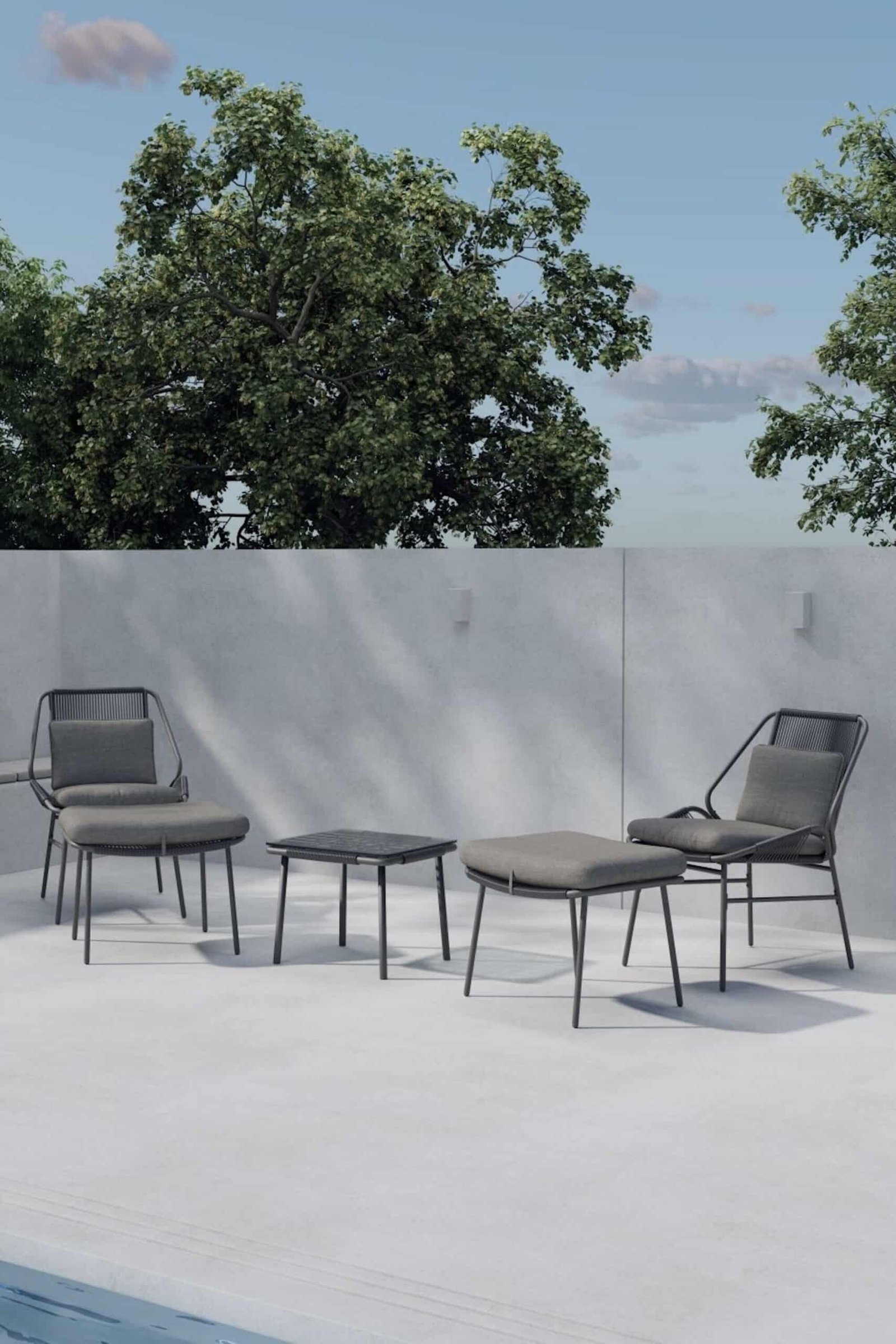 De Shiquita Lounge Set in een bruine tint is een strakke en comfortabele meubelset die uitnodigt tot relaxen. De set bestaat uit twee fauteuils met zachte kussens, twee bijpassende voetenbankjes en een kleine tafel met een glazen blad – perfect voor het creëren van een harmonieuze lounge-omgeving op het terras, in de tuin of bij het zwembad. Het bruine frame en de zachte kussens zorgen voor een warme en elegante uitstraling die makkelijk past in verschillende buitenomgevingen. De Shiquita Lounge Set is de perfecte keuze voor wie comfort wil combineren met een modern design.