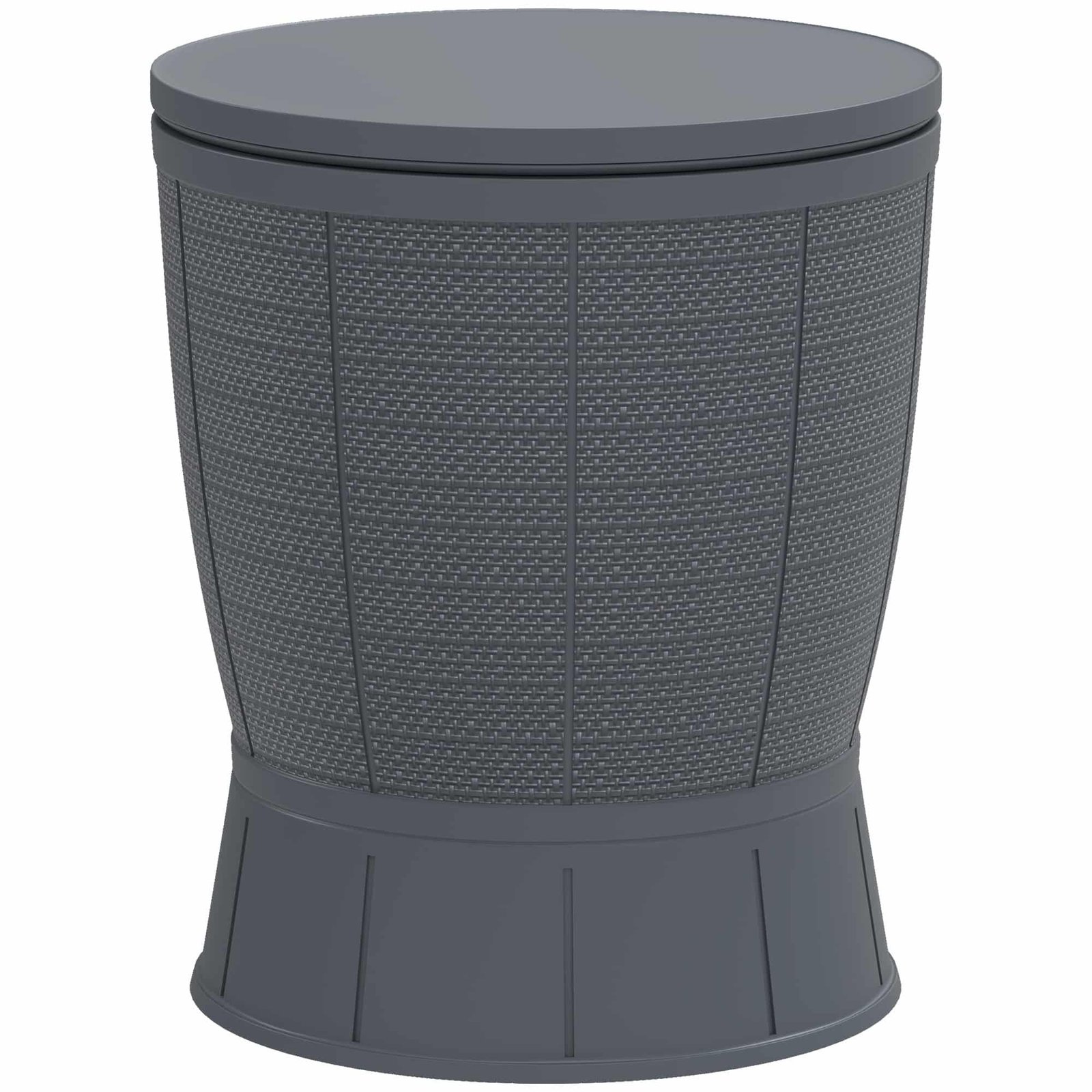 Outsunny 3-in-1 Buitenbijzettafel 45 x 43 cm Ronde Koelbox Weerbestendige Balkontafel met 41 L Opslag Kunststof Grijs