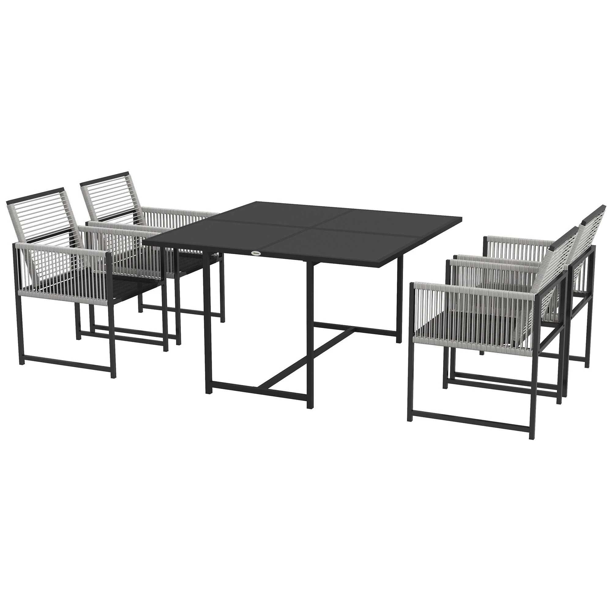 Outsunny 5-delige tuinmeubelset, weerbestendig, comfortabel, inclusief 1 tafel en 4 stoelen, perfect voor buiten, lichtgrijs, zwart | Aosom.nl