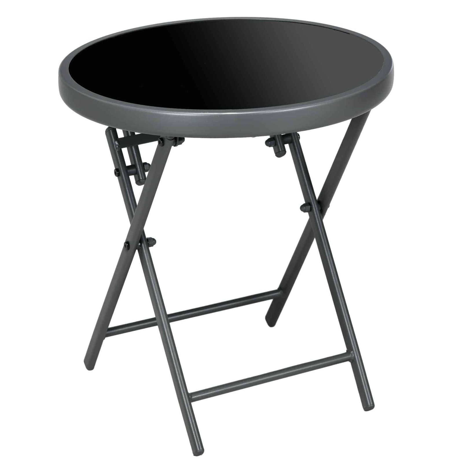 Outsunny Opklapbare Bijzettafel, Outdoor Klaptafel, met Tafelblad van Gehard Glas, voor Terras, 45 x 45 x 50 cm Zwart