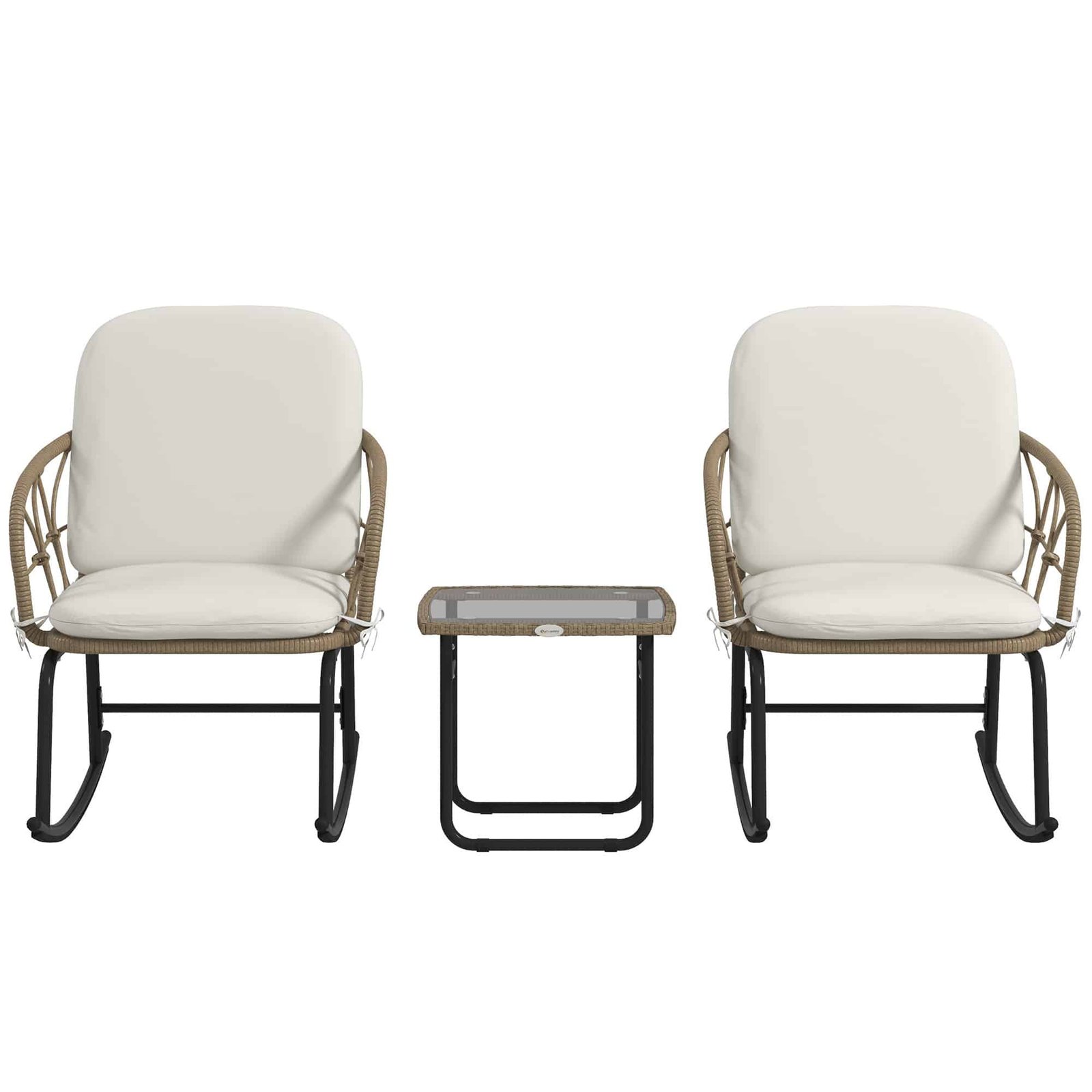 Outsunny schommelstoelset, stijlvolle bistro-set, boho-stijl, weerbestendig PE-rattan, comfortabel, 2-zits, 120 x 70 x 80 cm, crème | Aosom.nl