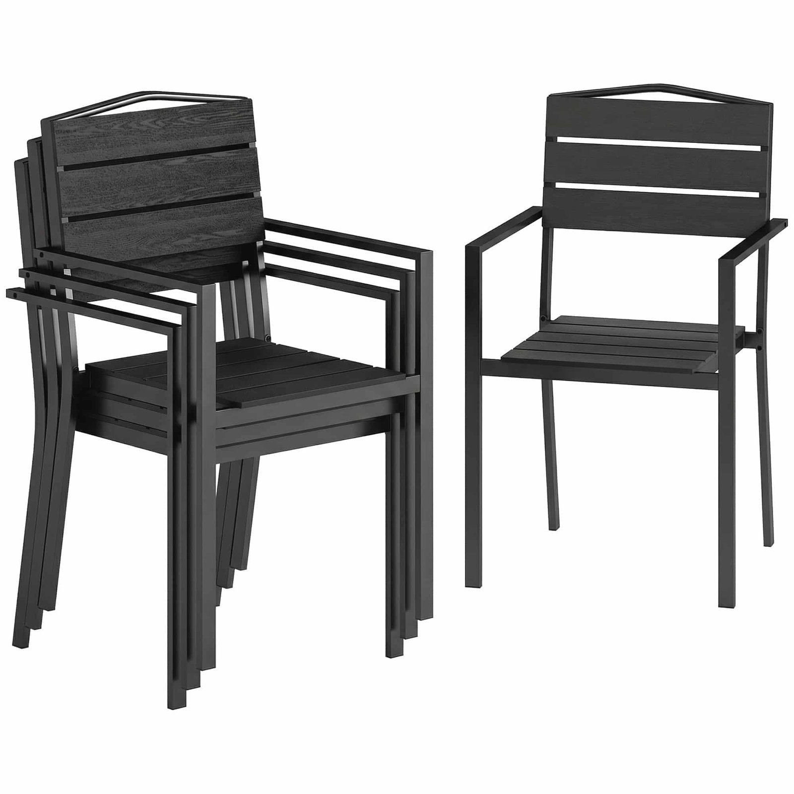 Outsunny Tuinstoelen 4-delig Stapelbare Terrasstoelen met lamellenontwerp en armleuningen 52 x 51 x 90 cm Zwart