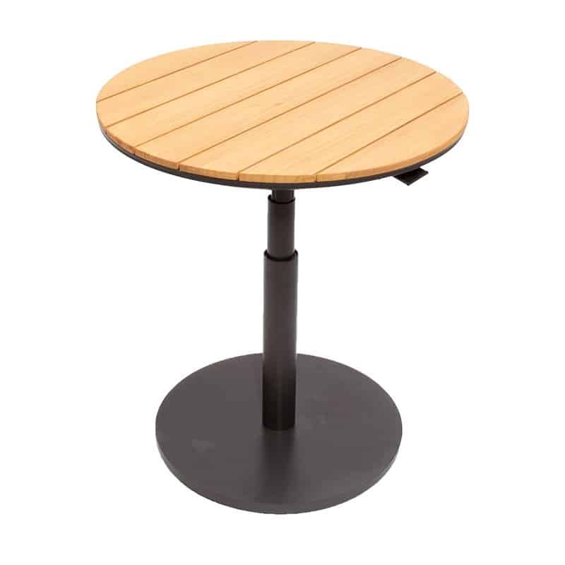 Padroni verstelbare bijzettafel midnight grey teak dia. 59 cm. De bijzettafel Padroni is gemaakt van aluminium en afgewerkt met een mooi tafelblad van teak. Daarnaast is de bijzettafel in hoogte verstelbaar.