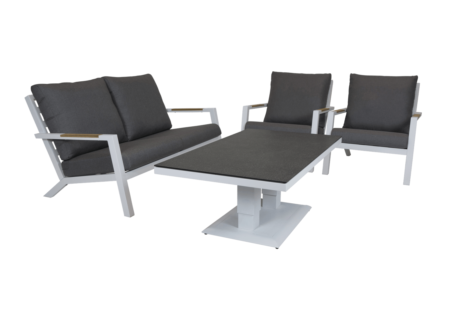 Qopps loungeset 2 zits bank met 2 lounge tuinstoelen en hoogte verstelbare koffie tafel