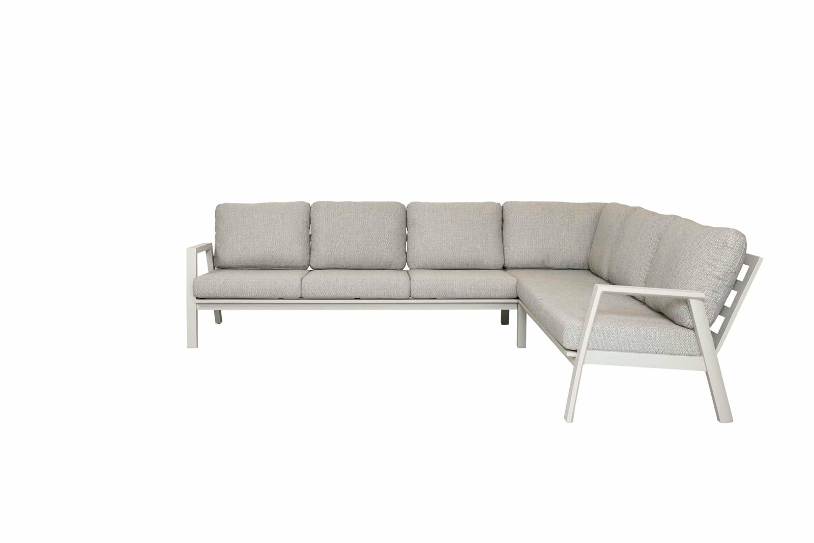 Okios lounge hoek heeft een heel goed comfort door de hoge rug en en comfortable kussens 12 cm dik. Deze set heeft een frame van aluminium en is gepoederd coat in het latte light. een licht beige kleur met een vleugje grijs. de kussens zijn van zeer hoge kwaliteit olifin wat zeer goed kleur echt zeer geschikt voor tuinmeubels.