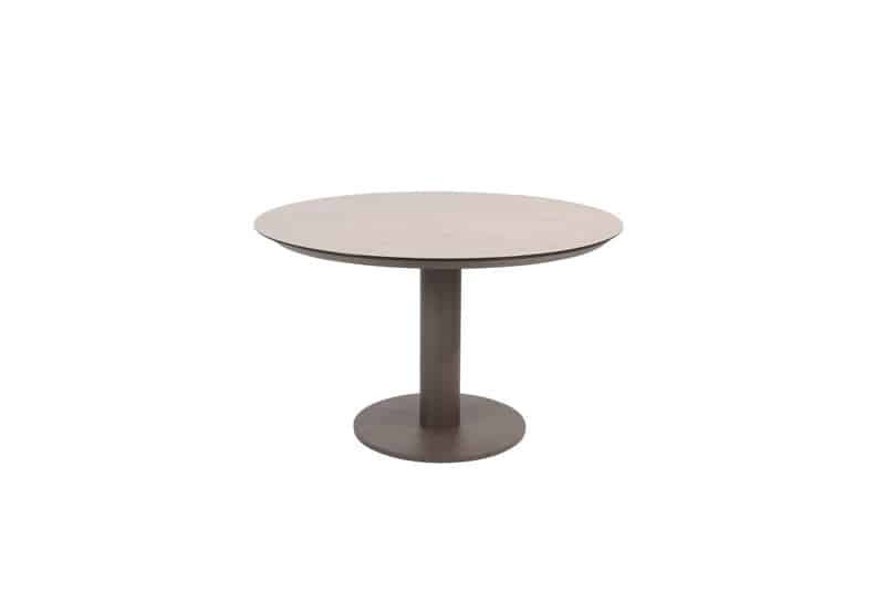De Sarah dining tafel in terre met rond printed keramisch blad van 120 cm doorsnede heeft een warme en moderne uitstraling. Geschikt voor diverse tuinstijlen. Onderhoudsarm en robuust.