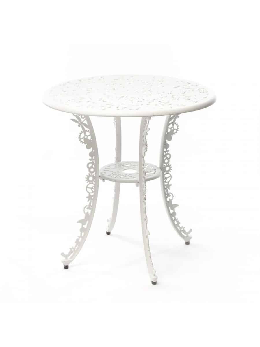 Tuintafel van Seletti. De Seletti Industry collection tafel maakt deel uit van de Industry collectie, in deze serie zijn tafels en stoelen beschikbaar in verschillende kleuren en afmetingen. Gemaakt van aluminium met een matte poedercoating. Afmeting Ø70 x hoogte 74cm