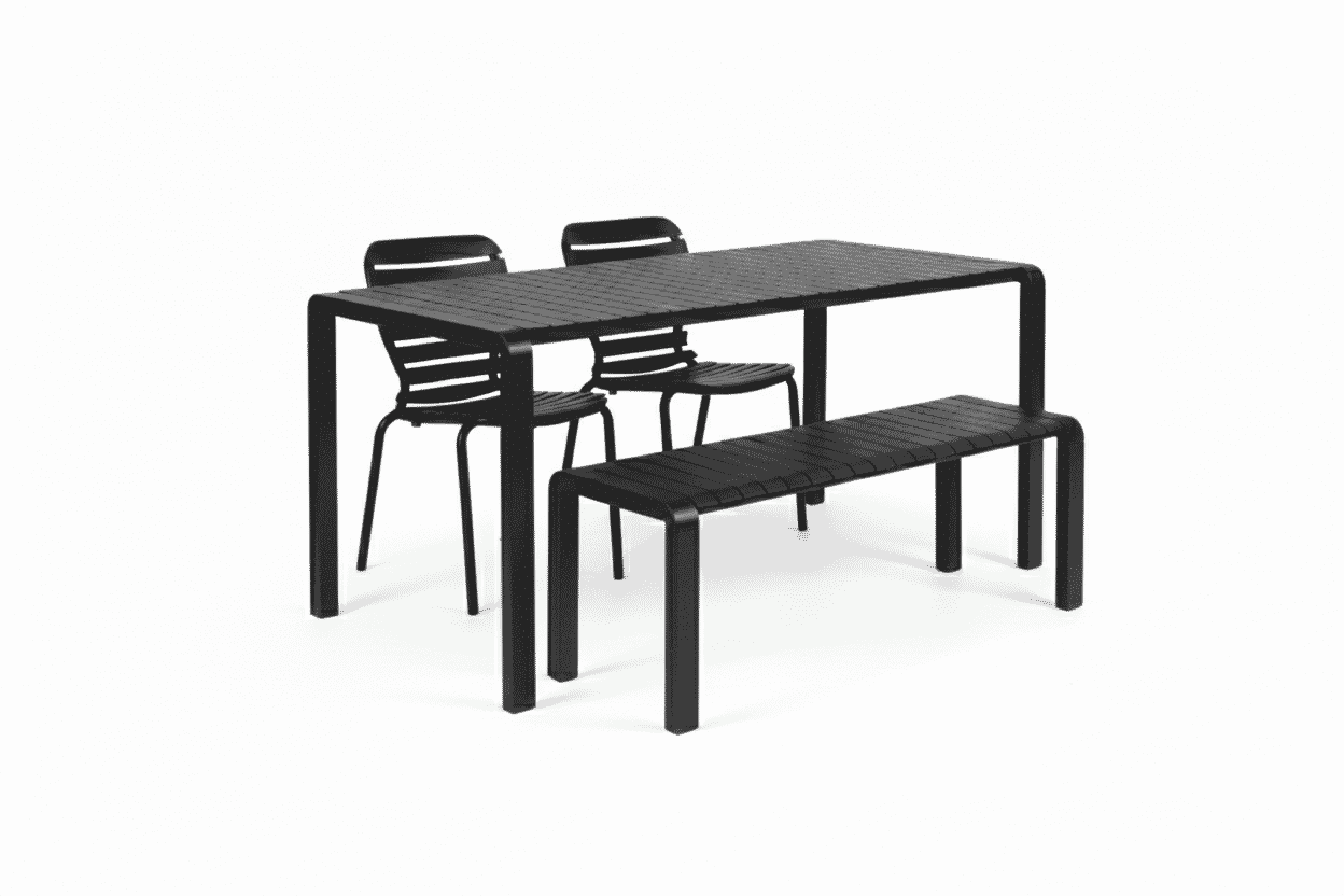 Zuiver Tuinset Vondel Met tuintafel, 2 stoelen en bankje, 168 x 87cm – Zwart