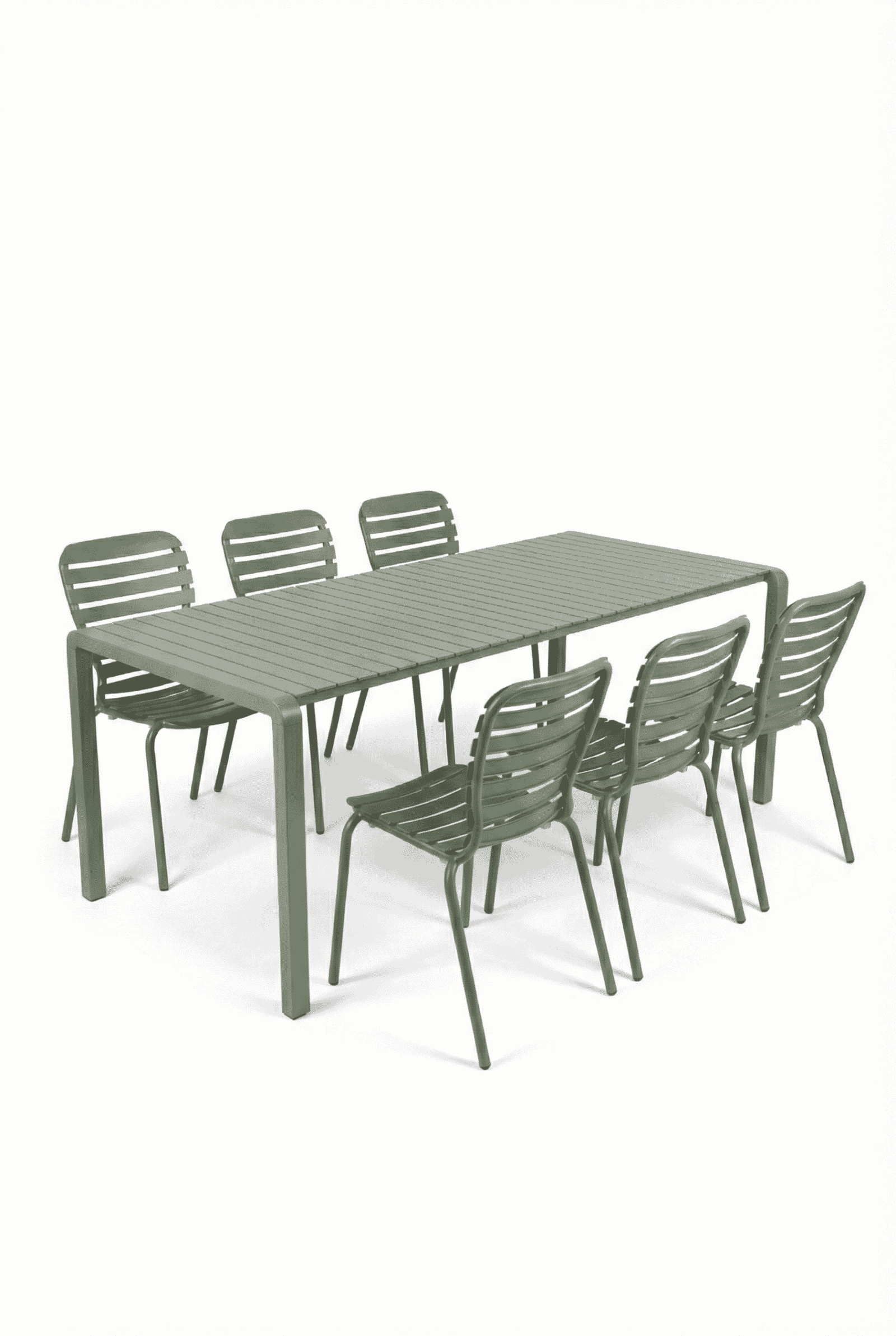 Zuiver Tuinset Vondel Met tuintafel en 6 stoelen, 214 x 97cm – Groen
