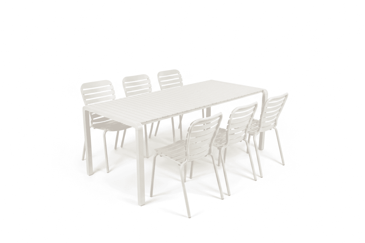 Zuiver Tuinset Vondel Met tuintafel en 6 stoelen, 214 x 97cm – Wit
