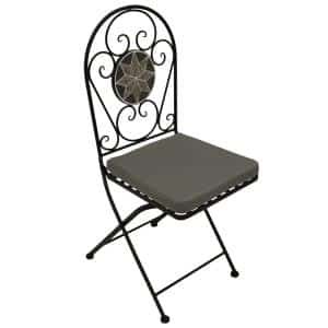 Bistrostoel klapstoel – Aluminium steen – ZwartKlapstoel, ijzer + grijze mozaïekdecoratie, set van 2Een stijlvolle set van 2 ijzeren klapstoelen met een elegante grijze mozaïekdecoratie! Perfect voor een zomerse picknick of een gezellige tuinfeestj…
