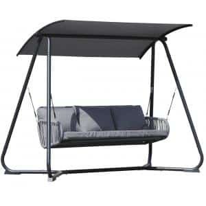 Elba Schommelbank antraciet – 3 persoonsElba antraciete Schommelbank 3 personenMet deze prachtige stijlvolle schommelbank Elba 3 persoons kom jij helemaal tot rust. Het frame van deze schommelstoel is gemaakt van staal en kent daardoor een draagvermo…