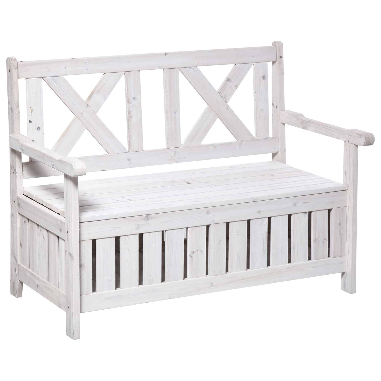 Outsunny tuinbank, 2-zits met opbergruimte, multifunctionele tuinkist, weerbestendig, vurenhout, tot 160 kg, 115 x 61 x 85 cm, wit | Aosom.nl