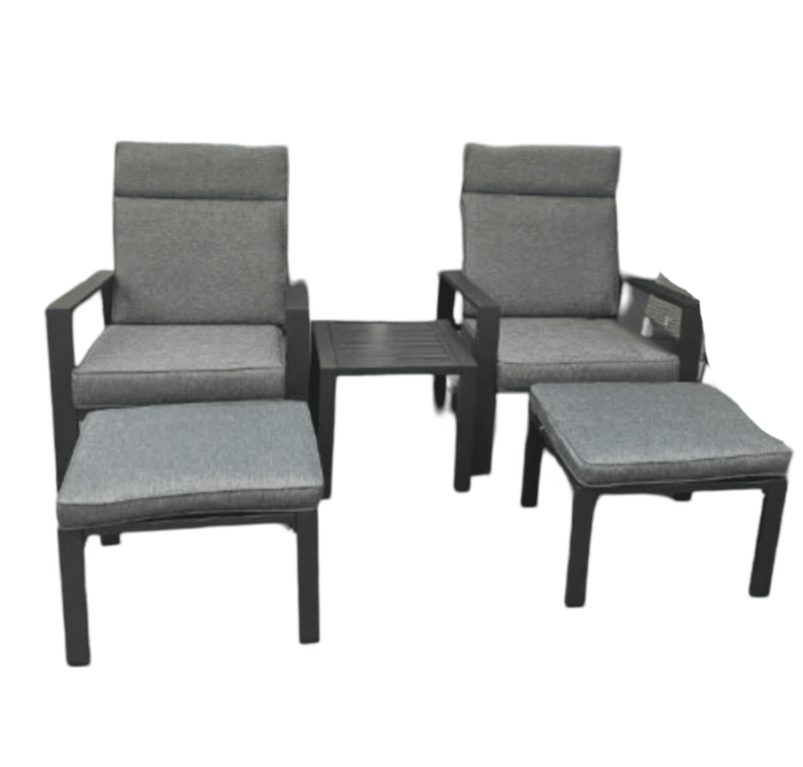 Reno 5-delige tuinset. Creëer de perfecte buitenoase met een stijlvolle en comfortabele tuinset, ideaal voor zowel ontspanning als gezellig samenzijn. Of het nu gaat om een intiem ontbijt of een feestelijk diner, onze tuinsets bieden de ultieme setting voor elk moment in de frisse lucht.