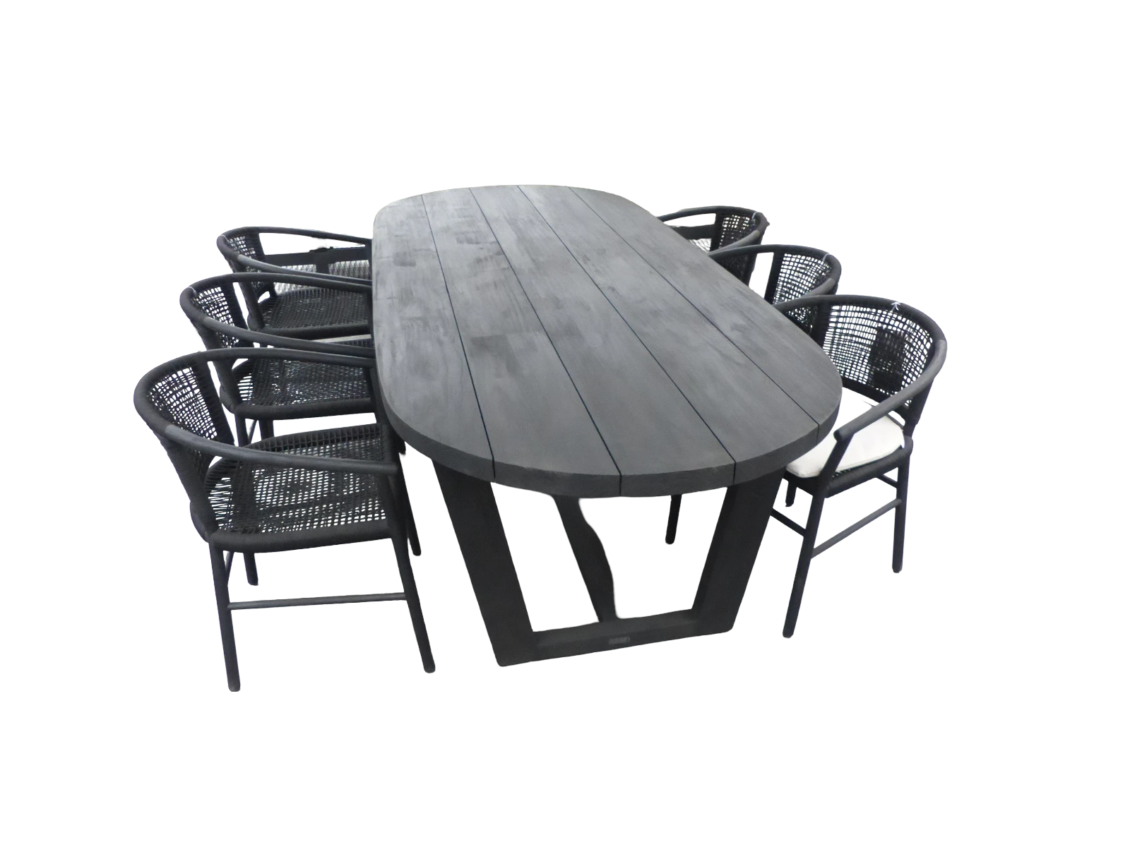 Set van Lauren tafel 270x110x76 cm charcoal en 6 Kevin stoelen lava Yoi – Yoi