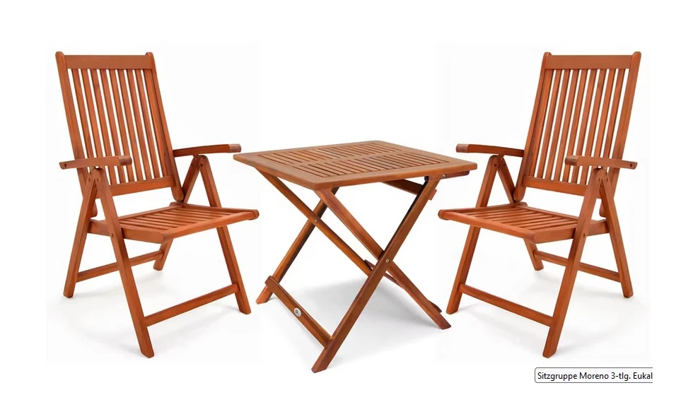 Tuinset inklapbaar Moreno 3-delig eucalyptushout FSC-gecertificeerd