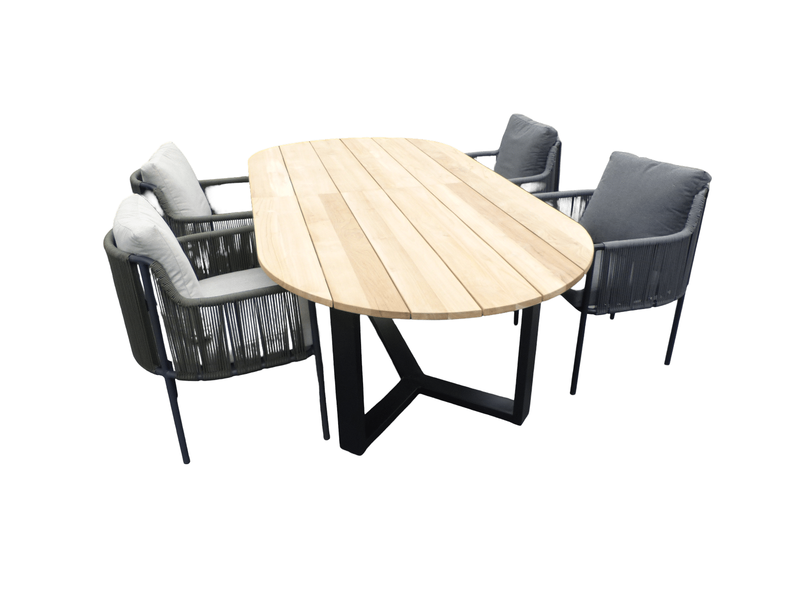 Set van Kaihou tafel 260x122x76 cm ovaal teak en 4 Umi stoelen zwart/grijs Yoi – Yoi