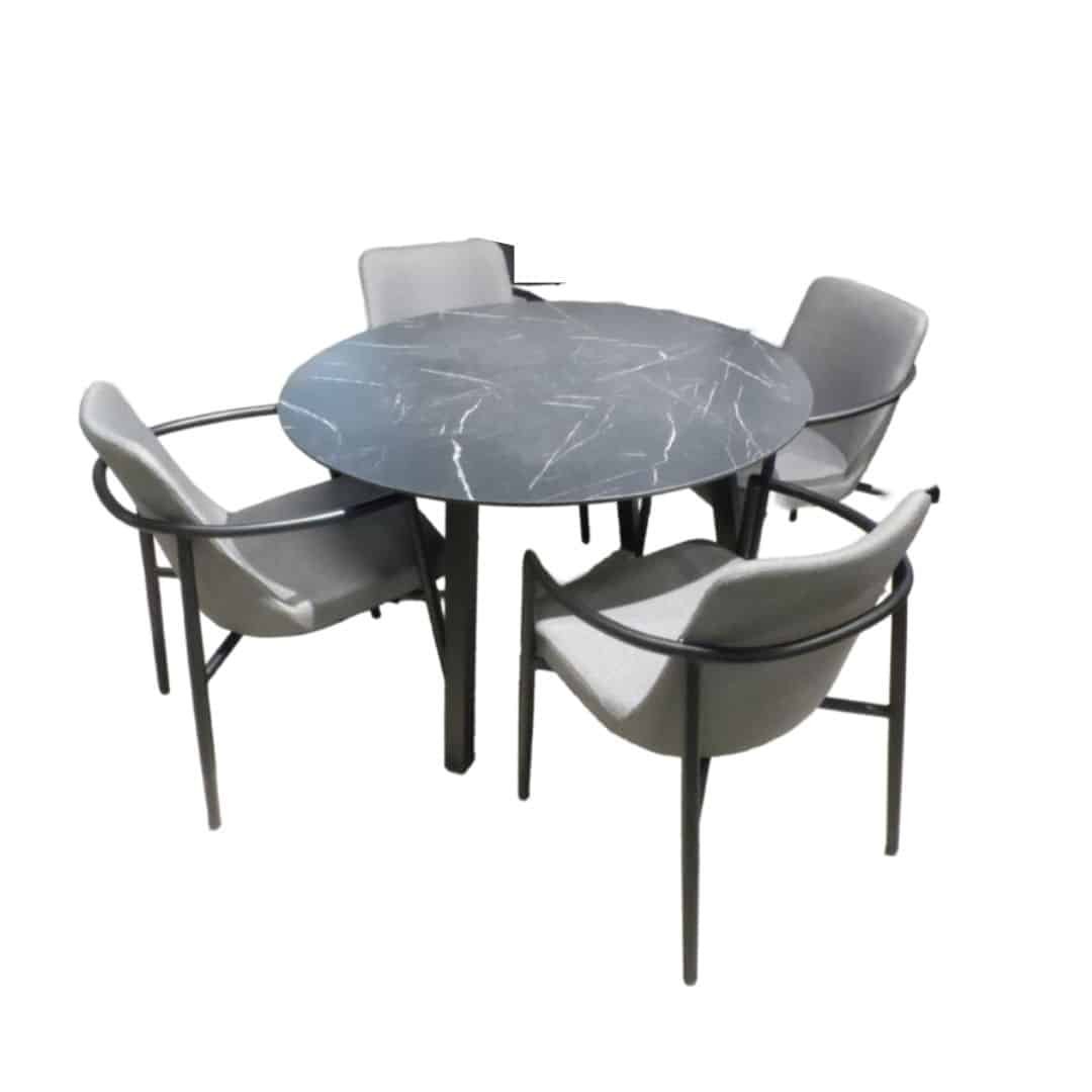 Tuinset Teeburu tafel black, slate dia. 120 cm met 4 stoelen Youkou stoel black, mixed grey Yoi – Yoi