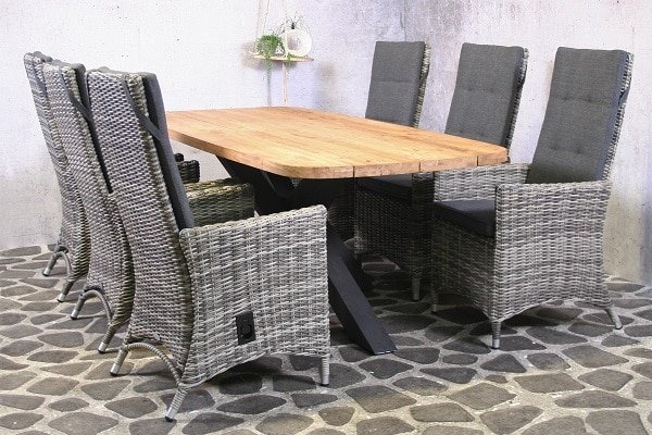 SenS-Line Tenerife tuinset 6 wicker stoelen met teakhouten tafel – Showmodel Numansdorp