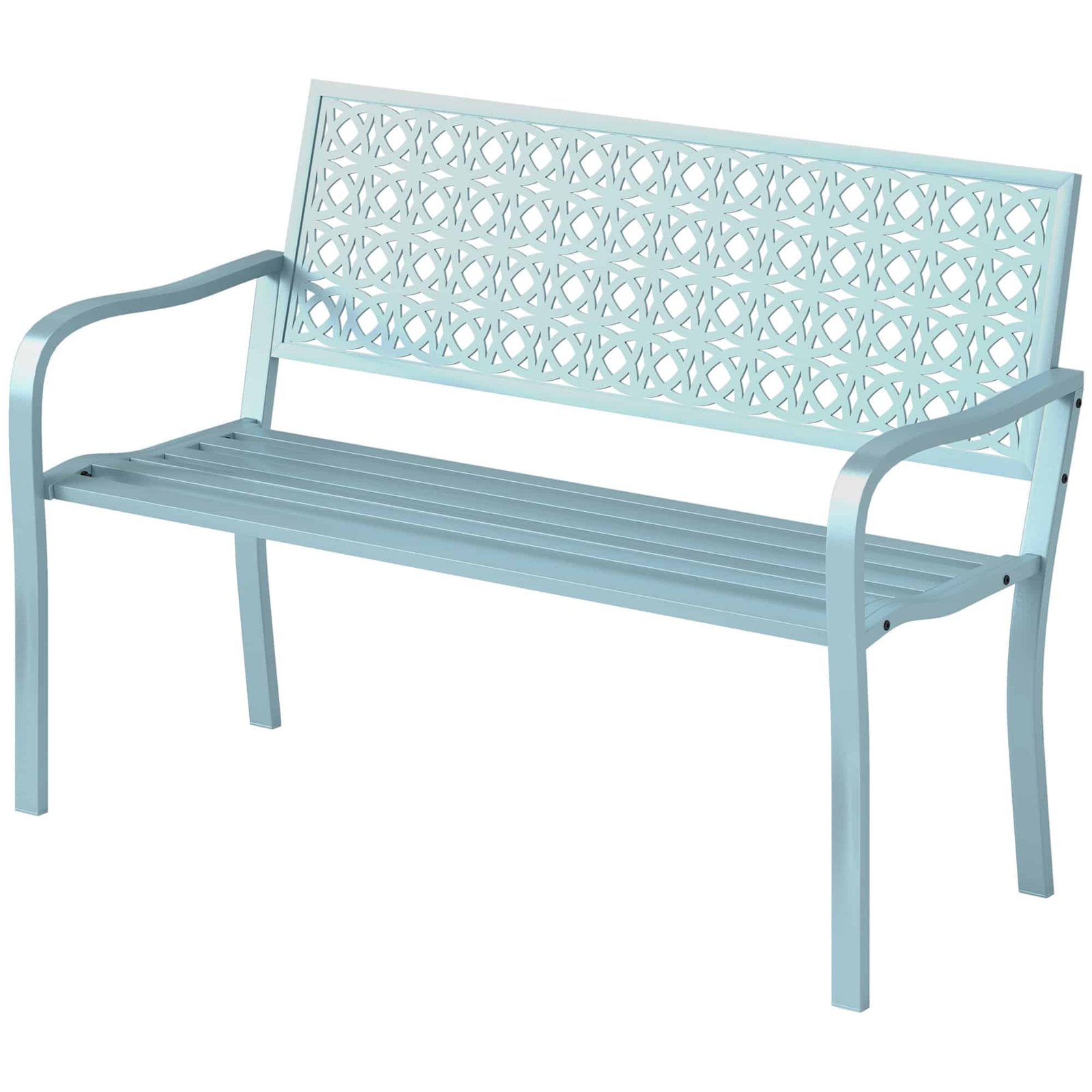 Outsunny Buitenbank, Tuinbank van Staal, Uitgesneden Rugleuning, Armleuningen, voor 2 Personen, Blauw