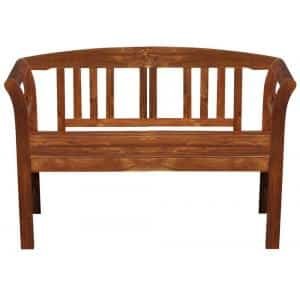 Rosario 2-persoons tuinbank 2-Persoons tuinbank Rosario siert in al zijn eenvoud. Het houten tuinbankje in een warme donkerbruine kleur heeft een decoratief snijwerk in de rugleuning. De ietwat rondlopende armleuningen zorgen voor een comfortabele zi…
