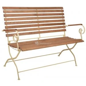 Sophia 2-zits inklapbare tuinbank crème Een sierlijk bankje! Dat is een passende omschrijving van deze tuinbank. De Sophia 2-zits inklapbare tuinbank heeft een stijlvolle uitstraling. De krullen in de armleuningen geven het gevoel alsof u in e…