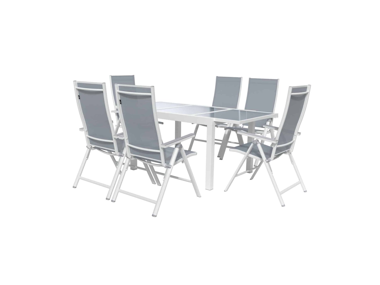 Tuinset Houston 7-delig Uitschuifbare tuintafel Houston De uitschuifbare tuintafel uit de serie Toronto is de ideale plek voor gezellige momenten in de buitenlucht. Door het moderne design in lichtgrijs past deze tafel prachtig op elk terras, balkon of in de tuin. Productkenmerken tabletd Serie: Houston Functie: snel en eenvoudig uitschuifbaar Weerbestendig: ja UV-bestendig: ja Roestbestendig: ja Materiaal: Frame: aluminium, gepoedercoat; tafelblad: veiligheidsglas Max. belasting: ca. 50 kg Afmetingen: ca. L 120-180 x B 89 x H 75 cm Gewicht: ca. 24,7 kg 2 Verstelbare tuinstoelen Houston Met deze 2-delige set aluminium tuinstoelen uit de Houston serie geniet je optimaal van jouw terras of balkon. De stoelen combineren een modern design met slimme functies voor urenlang buitenplezier. Productkenmerken tabletd Serie: Houston Functie: ruimtebesparend inklapbaar, rugleuning 7-voudig verstelbaar Weerbestendig: ja Uv-bestendig: ja Roestbestendig: ja Materiaal: Frame: aluminium, gepoedercoat,