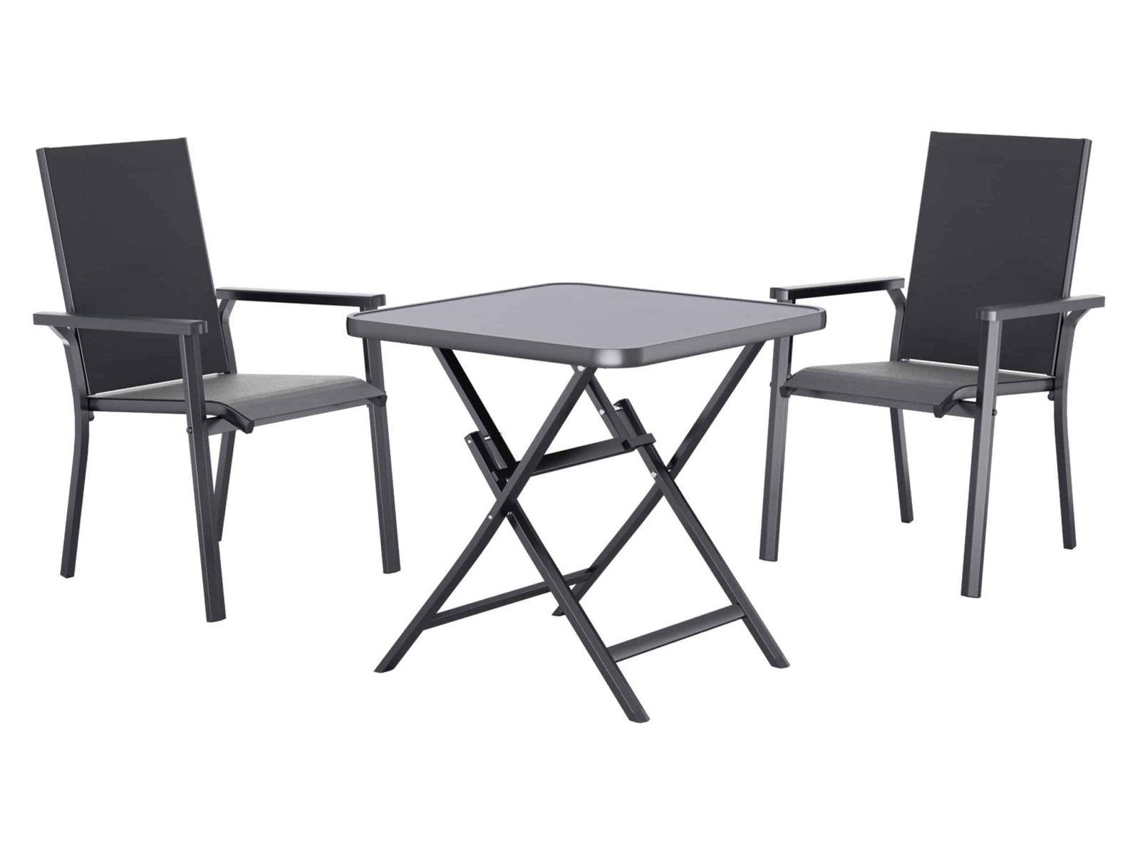 Tuinset Houston 3-delig Inklapbare tuintafel Houston De Livarno aluminium glazen tuintafel uit de serie Houston geeft jouw terras of tuin direct een moderne uitstraling. Deze tafel is de ideale keuze voor wie houdt van een slimme en inrichting voor buitentd Weerbestendig Vloerbeschermende poten Productkenmerken tabletd Serie: Houston Functie: ruimtebesparend inklapbaar Weerbestendig: ja Roestbestendig: ja Materiaal: Frame: aluminium, gepoedercoat; tafelblad: gehard veiligheidsglas Max. belasting: ca. 50 kg Afmetingen: ca. L 70 x B 70 x H 70 cm Gewicht: ca. 8,36 kgtd Stapelbare tuinstoel Houston Geniet van het buitenleven met deze stijlvolle stoel voor je tuin of balkon. De stoel combineert een modern ontwerp met optimaal comfort voor elke zomerse dag. td Serie: Houston Functie: ruimtebesparend stapelbaar Weerbestendig: ja Uv-bestendig: ja Materiaal: Frame: aluminium, gepoedercoat; Zitting/rug: textileen slijtvast kunststofweefsel; Armleuningen: polypropyleen Max. belasting: ca. 110 kg