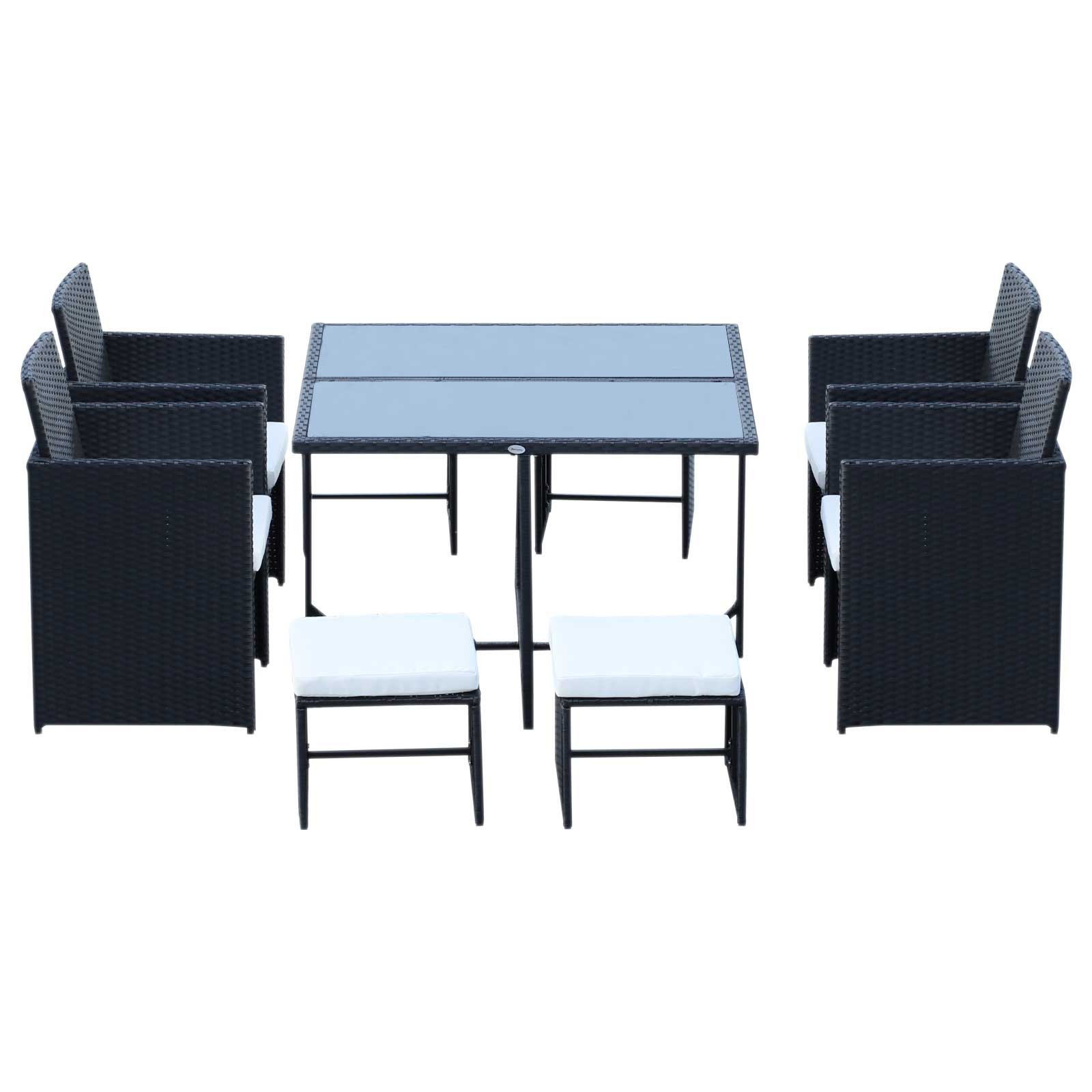 Outsunny 9/11/13-delige tuinset, luxe rotan zitgroep, weerbestendig, comfortabel, eenvoudig te onderhouden, 220 x 150 x 75 cm, zwart | Aosom.nl