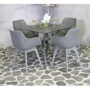 SenS-line kunststof tuinset Jasper Specificaties tuinstoelen: Hoogte: 83 cm Breedte: 59 cm Diepte: 54 cm Zithoogte: 45 cm Zitdiepte: 36 cm Armleuning hoogte: 68 cm Gewicht: 8 kg Materiaal: Kuststof Kleur: Grijs Specificaties tuintafel: Lengte: 5…