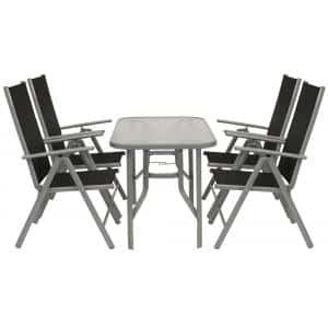 Stockholm 5-delig tuinset Specificaties: Afmeting tafel: 120 x 70 x 73 cm Afmetingen stoelen: 56 x 65.5 x 107 cm Materiaal tafel rame: Staal Afwerking tafel frame: Gepoedercoat Materiaal stoel frame: Aluminium Materiaal zitting: Textiel Kleur textiel…