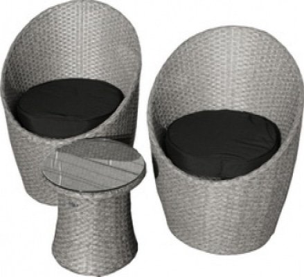 Tuinmeubel tuinset Milano, 3 delige set weerbestendig vlechtwerk incl. zwarte kussen, 2 zetels, 1 tafel
