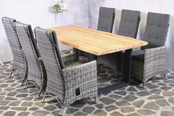 SenS-Line Ferro tuinset 6 wicker stoelen met teakhouten tafel- – Steigerhout,Teak,Wicker- Sens-Line