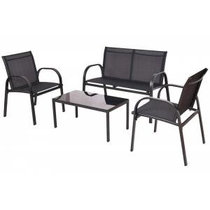 Tuinset Hamburg 4-delig Specificaties: Afmeting bank (lxbxh): 108 x 63 x 83 cm Afmeting stoel (lxbxh): 63 x 58 x 83 cm Afmetingen tafel (lxbxh): 80 x 83 x 58 cm Materiaal frame: Gepoedercoat metaal Kleur frame: Zwa…