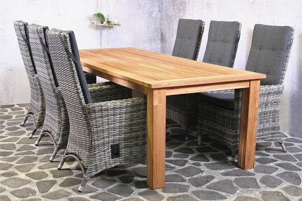 SenS-Line Haria tuinset – 6 wicker stoelen met teakhouten tafel