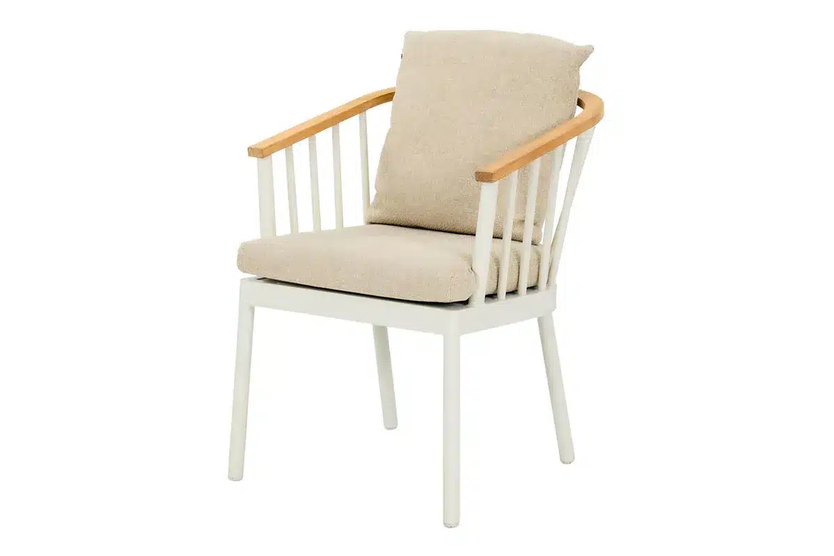 Introductie Apple Bee Condor tuinstoel OysterDe Apple Bee Condor tuinstoel Oyster van Fonteyn combineert elegante vormgeving met superieur zitcomfort voor jouw buitenruimte. Deze prachtige tuinstoel kenmerkt zich door het verfijnde aluminium frame in oyster-kleur, aangevuld met warme teakhouten armleuningen die een natuurlijke touch toevoegen. Het doordachte ontwerp straalt tijdloze elegantie uit en past perfect bij moderne tuintrends.nnElegante uitstraling die warmte uitstraaltDeze tuinstoel creëert direct een gevoel van rust en sereniteit in jouw tuin. De zachte oyster-kleur vormt een neutrale basis die harmonieus past bij verschillende tuinstijlen, van modern tot klassiek. Het spijlenpatroon in de rugleuning zorgt voor een luchtige verschijning, terwijl de teakhouten accenten warmte en karakter toevoegen aan het geheel.nnOptimaal comfort door doordacht designDeze tuinstoel biedt uitstekende ondersteuning dankzij de verticale spijlen in de rugleuning die natuurlijke ventilatie mogelijk maken. Het stevige aluminium frame garandeert stabiliteit tijdens gebruik, terwijl de warme teakhouten armleuningen een aangename grip bieden. De comfortabele afmetingen van 60 x 64 x 78 cm zorgen voor ideaal zitcomfort tijdens lange zomeravonden.nnEenvoudig onderhoud voor maximaal gemakDankzij het aluminium frame behoudt deze tuinstoel moeiteloos zijn strakke uitstraling met minimaal onderhoud. De combinatie van materialen zorgt voor weersbestendigheid, waardoor je zorgeloos kunt genieten van jouw buitenruimte. Het neutrale kleurenpalet maakt het eenvoudig om verschillende accessoires en decoraties te combineren naar jouw persoonlijke smaak.nnVerstandige keuze voor duurzame kwaliteitDeze tuinstoel vertegenwoordigt een slimme investering in bewezen vakmanschap en tijdloze vormgeving. De combinatie van hoogwaardige materialen zoals aluminium en teakhout zorgt voor jarenlange betrouwbaarheid. Het klassieke ontwerp blijft relevant ongeacht veranderende trends, waardoor je investeert in meubels die hun waarde behouden.nnZekerheid van het productApple Bee staat garant voor uitzonderlijke kwaliteit, en deze Condor tuinstoel bevestigt die reputatie volledig. Het solide aluminium frame en zorgvuldig geselecteerde teakhouten elementen zijn bestand tegen verschillende weersomstandigheden. Deze betrouwbare constructie zorgt ervoor dat je seizoen na seizoen kunt genieten van consistent comfort en duurzame kwaliteit.nnShowroom in UddelBezoek de indrukwekkende 35.000m2 showroom in Uddel, de grootste tuinmeubelshowroom van Europa, waar je deze Apple Bee tuinstoel persoonlijk kunt ervaren. Test het zitcomfort en voel de kwaliteit van de materialen, terwijl de interne opgeleide experts van Fonteyn je adviseren over de perfecte combinatie met andere tuinmeubelen. Profiteer van het brede assortiment, grote voorraad en snelle levering. Ben je al zeker van jouw keuze? Dan kun je direct bestellen via de webshop van Fonteyn.n