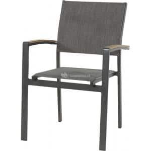 Arezzo stapelstoelen antraciet textileen Denkt u bij stapelstoelen aan saaie kunststof stoeltjes? Dat is niet aan de orde bij deze stapelstoelen uit de Arezzo serie. Een combinatie van aluminium, textileen en polywood maakt van deze stapelstoel een z…