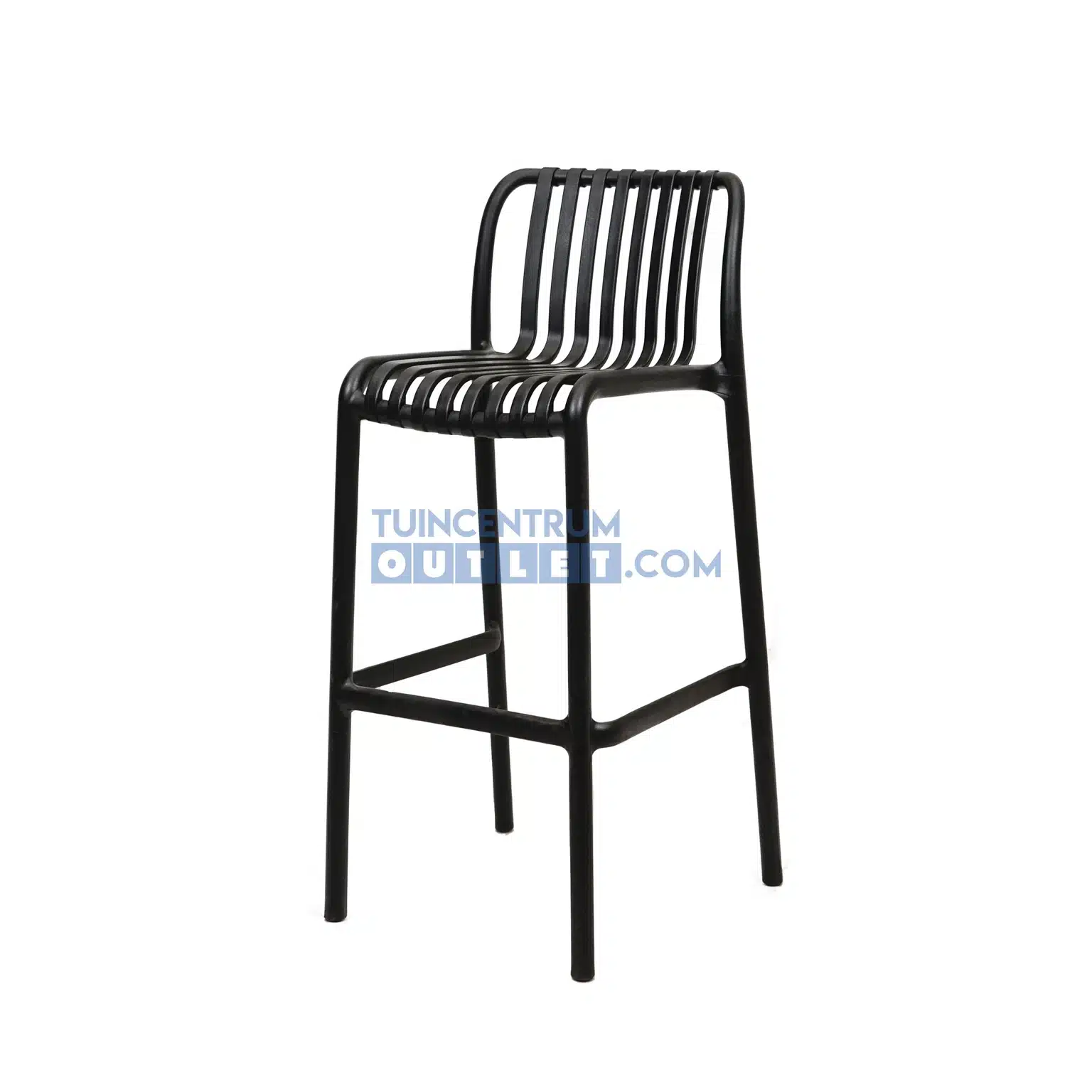 Barstoel Zwart B-03 Porto Barkruk Stapelbaar van Vita. Een kunststof stapelbare stoel voor buiten in de tuin.