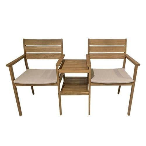Cruz Tete a Tete tuinbank. Leuke tweezitter met voor in de tuin! De stoelen zijn met elkaar verbonden door een tafel in het midden. Hout is nooit honderd procent gaaf, het wordt grijs van kleur en er kunnen scheurtjes, verkleuring en gaatjes ontstaan. Dat is niet gek want hout is immers een natuurproduct. Enkel de verkleuring kan worden voorkomen door het hout 2 keer per jaar te behandelen. Hout maakt tuinmeubelen mooi, sterk, duurzaam en trendy, ondanks de scheurtjes en verkleuringen blijft hout zijn kracht behouden en kan het tegen verschillende weersinvloeden.