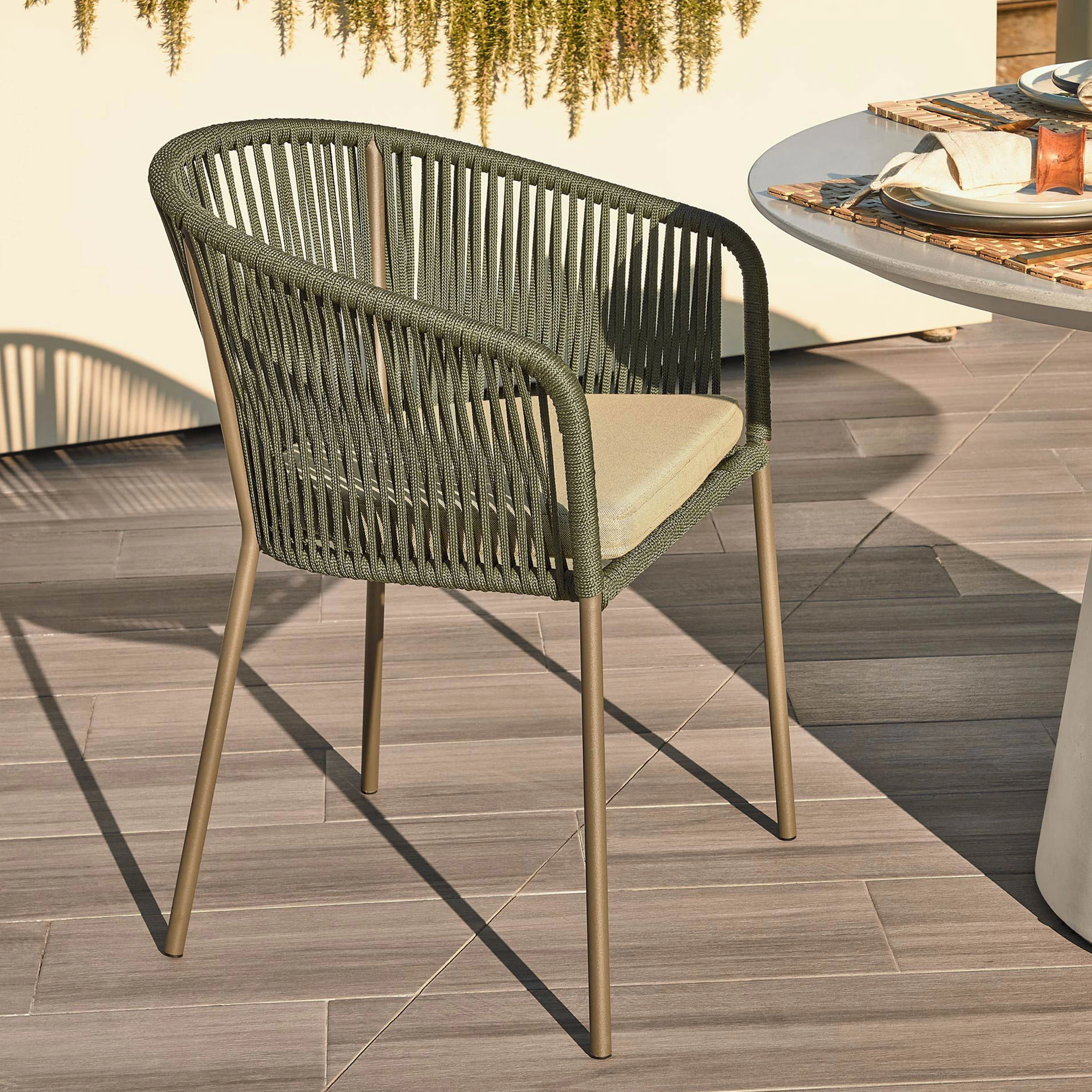 Zitting met stoel gemaakt van handgeweven touw, bestand tegen UV-stralen.