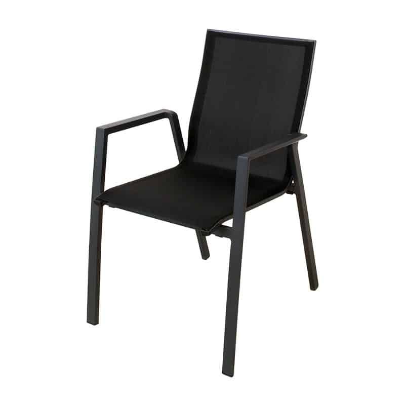 La Salle dining stoel midnight grey. De dining stoel La Salle is gemaakt van een aluminium frame en afgewerkt met textilene.