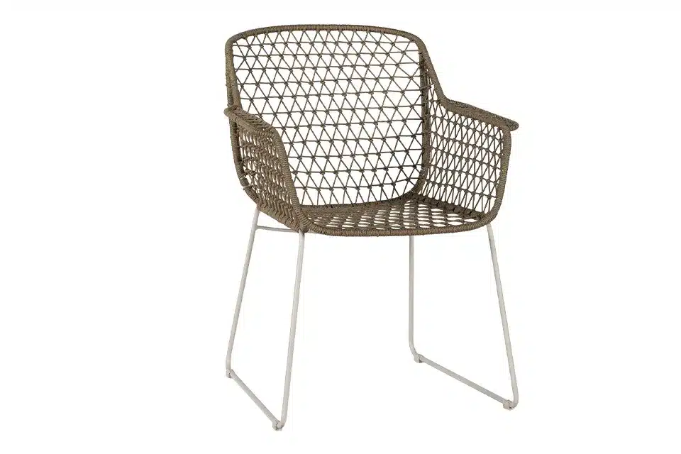 Max & Luuk Austin tuinstoel camelDe Max & Luuk Austin tuinstoel camel van Fonteyn brengt verfijnde elegantie naar je buitenruimte. Deze prachtige tuinstoel combineert het beste van ambachtelijk vakmanschap met eigentijds design. Het fijngeweven All Weather Rope materiaal vormt een opvallend geometrisch driehoekspatroon dat elke hoek van je terras of tuin opwaardeert. Het robuuste aluminium frame met hoogwaardige poedercoating biedt jarenlange stabiliteit en betrouwbaarheid.nnWarme uitstraling die je buitenruimte opwaardeertDeze tuinstoel straalt warmte en luxe uit dankzij de elegante camelkleur die perfect harmonieert met verschillende tuinstijlen. Het gevlochten ontwerp creëert een fascinerend spel van licht en schaduw dat de Austin tot een ware eyecatcher maakt. De open structuur van het weefwerk geeft je terras een luchtige en moderne uitstraling die gasten direct opvalt en waardeert.nnDoordacht comfort voor optimale ontspanningElke curve van deze tuinstoel is ontworpen met jouw comfort als prioriteit. De ergonomisch gevormde rugleuning volgt de natuurlijke lijn van je rug, terwijl de geïntegreerde armsteunen een harmonieuze overgang vormen tussen zitting en rugleuning. Met afmetingen van 62 x 62 x 84 cm en een comfortabele zithoogte van 44 cm biedt de Austin ideale ondersteuning voor uren van relaxatie in je tuin.nnPraktisch gemak dat het leven vereenvoudigtHet slimme slede-vormige frame design combineert stabiliteit met elegantie door de rechte voorpoten en schuin geplaatste achterpoten. Dankzij het lichtgewicht aluminium frame verplaats je de stoel moeiteloos wanneer je de indeling van je buitenruimte wilt aanpassen. Het onderhoudsarme All Weather Rope behoudt seizoen na seizoen zijn prachtige vorm en kleur, zodat je tijd overhoudt voor wat echt belangrijk is: genieten van je tuin.n